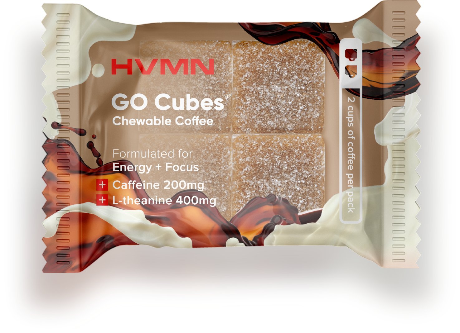 What are Go Cubes. GO CUBES are made with real cold-brew coffee and they pack a serious amount of coffee into every bite 2 cubes 1 cup of coffee. Four gummies per pack and each gummy is half a cup of coffee.